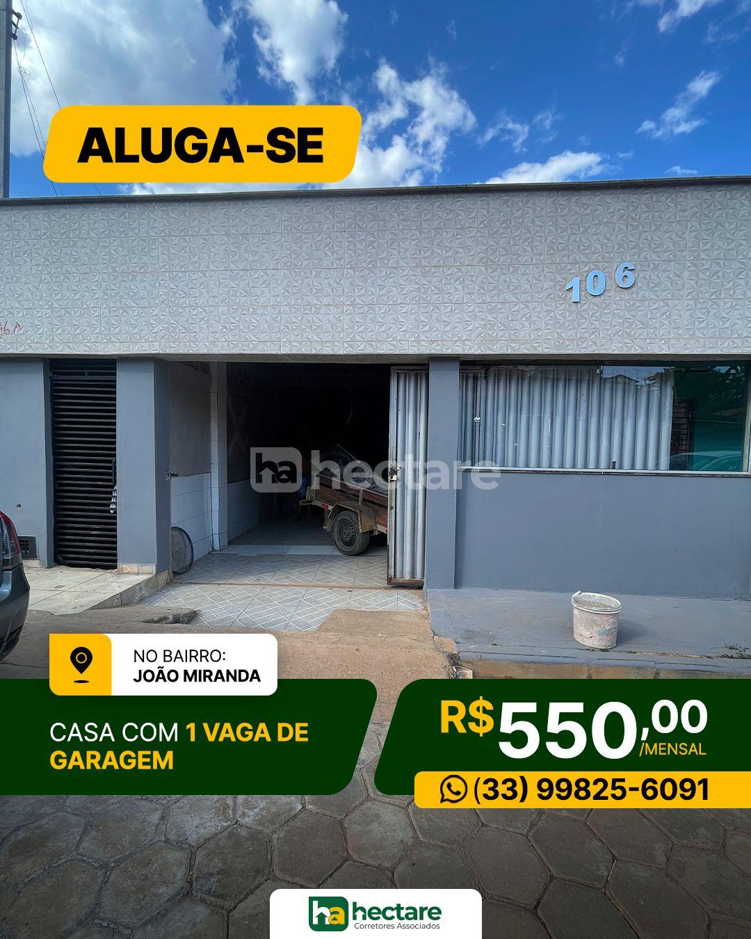 Casa com 2 dormitórios para locação, JOÃO MIRANDA, GUANHAES - MG